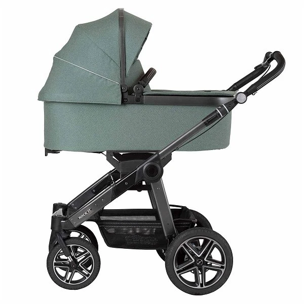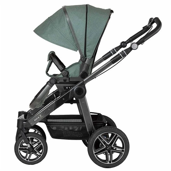 Der Hartan Rock it GTR Kinderwagen ist mit allem ausgestattet was Sie für den ersten Ausflug mit Ihrem Baby brauchen. Von Geburt an kann der Hartan Kinderwagen mit der geräumigen Falttasche Premium genutzt werden. Diese ist mit einer Softline-Klima Matratze ausgestattet und hat eine doppelt ausklappbare Sonnenblende sowie einen Windschutz für Schutz und Komfort in den ersten Monaten. Zusätzlich befindet sich der Adapter 9912 für alle gängigen Babyschalen im Lieferumfang, mit diesem können Sie Ihren Hartan Kinderwagen einfach in ein Travelsystem verwandeln. Für ein optimales Fahrgefühl sorgen die gefederten, extragroßen Fronträder mit Trigon-Felge und das auf jedem Terrain, außerdem sind die Luftkammerräder superleicht und kugelgelagert. Durch den höhenverstellbaren Schiebegriff passt sich der Kinderwagen individuell an Ihre Körpergröße an. Die Griffbezüge in Lederoptik sind wertvoll veredelt und bieten eine gute Haptik.