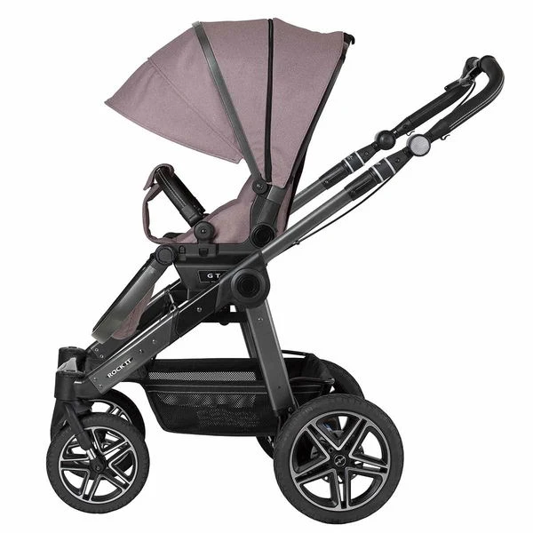 Der Hartan Rock it GTR Kinderwagen ist mit allem ausgestattet was Sie für den ersten Ausflug mit Ihrem Baby brauchen. Von Geburt an kann der Hartan Kinderwagen mit der geräumigen Falttasche Premium genutzt werden. Diese ist mit einer Softline-Klima Matratze ausgestattet und hat eine doppelt ausklappbare Sonnenblende sowie einen Windschutz für Schutz und Komfort in den ersten Monaten. Zusätzlich befindet sich der Adapter 9912 für alle gängigen Babyschalen im Lieferumfang, mit diesem können Sie Ihren Hartan Kinderwagen einfach in ein Travelsystem verwandeln. Für ein optimales Fahrgefühl sorgen die gefederten, extragroßen Fronträder mit Trigon-Felge und das auf jedem Terrain, außerdem sind die Luftkammerräder superleicht und kugelgelagert. Durch den höhenverstellbaren Schiebegriff passt sich der Kinderwagen individuell an Ihre Körpergröße an. Die Griffbezüge in Lederoptik sind wertvoll veredelt und bieten eine gute Haptik.