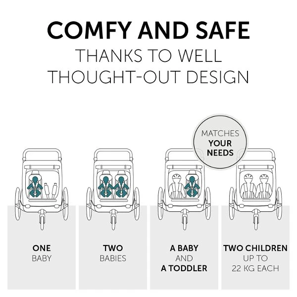 Ob neue oder wachsende Familie, mit dem Baby Lounger genieĂt ihr die maximale Nutzungsdauer des Dryk Duo FahrradanhĂ€ngers und Buggys. Denn durch den Einhang ist er schon fĂŒr Babys ab einem Monat nutzbar.