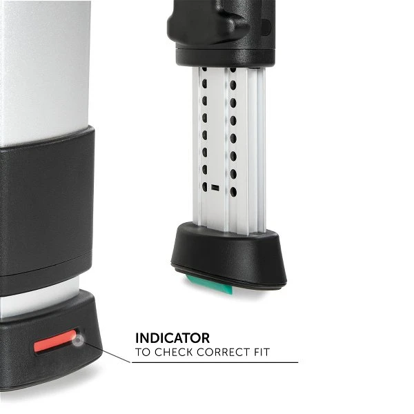 Gleiches gilt für den Einbau des Autositzes Comfort Fix in die Base. Der Comfort Fix wird hierzu einfach mittig auf die Base gesetzt. Spezielle Führungsleisten sorgen dafür, dass der Comfort Fix immer korrekt in die Base gleitet und dort verriegelt. Optische Indikatoren zeigen den Verriegelungszustand, bzw. den korrekten Einbau am ISOFIX, der Schalenbefestigung und am Standfuß an. So wird größtmögliche Sicherheit gewährleistet.