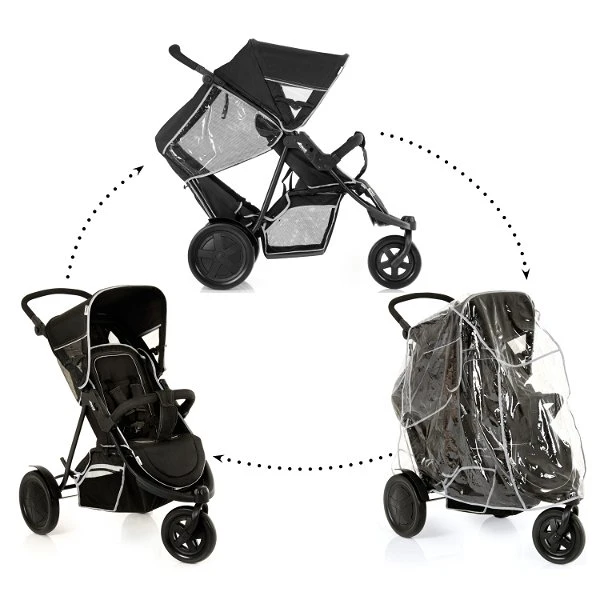 Für optimalen Wohlfühlkomfort sorgen beim Hauptsitz eine per Einhandbedienung verstellbare Rückenlehne bis in Liegeposition und eine mehrfach regulierbare Fußstütze. Beim Zweitsitz lässt sich die Rückenlehne durch Öffnen der seitlichen Reißverschlüsse bis in Ruheposition bringen. Besten Schutz vor Sonne, Wind und Regen bietet das verlängerbare Verdeck mit seitlichen Sichtfenstern. Es überspannt beide Kinder, kann aber teilweise per Zipper abgenommen werden.