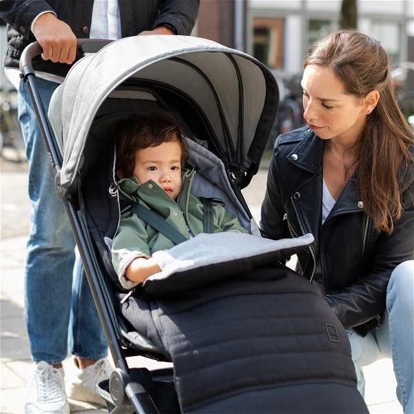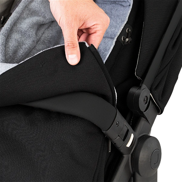 Einfach den Fußsack am Sitz deines Joolz Kinderwagens befestigen, und du bist bereit für Wind und Wetter.